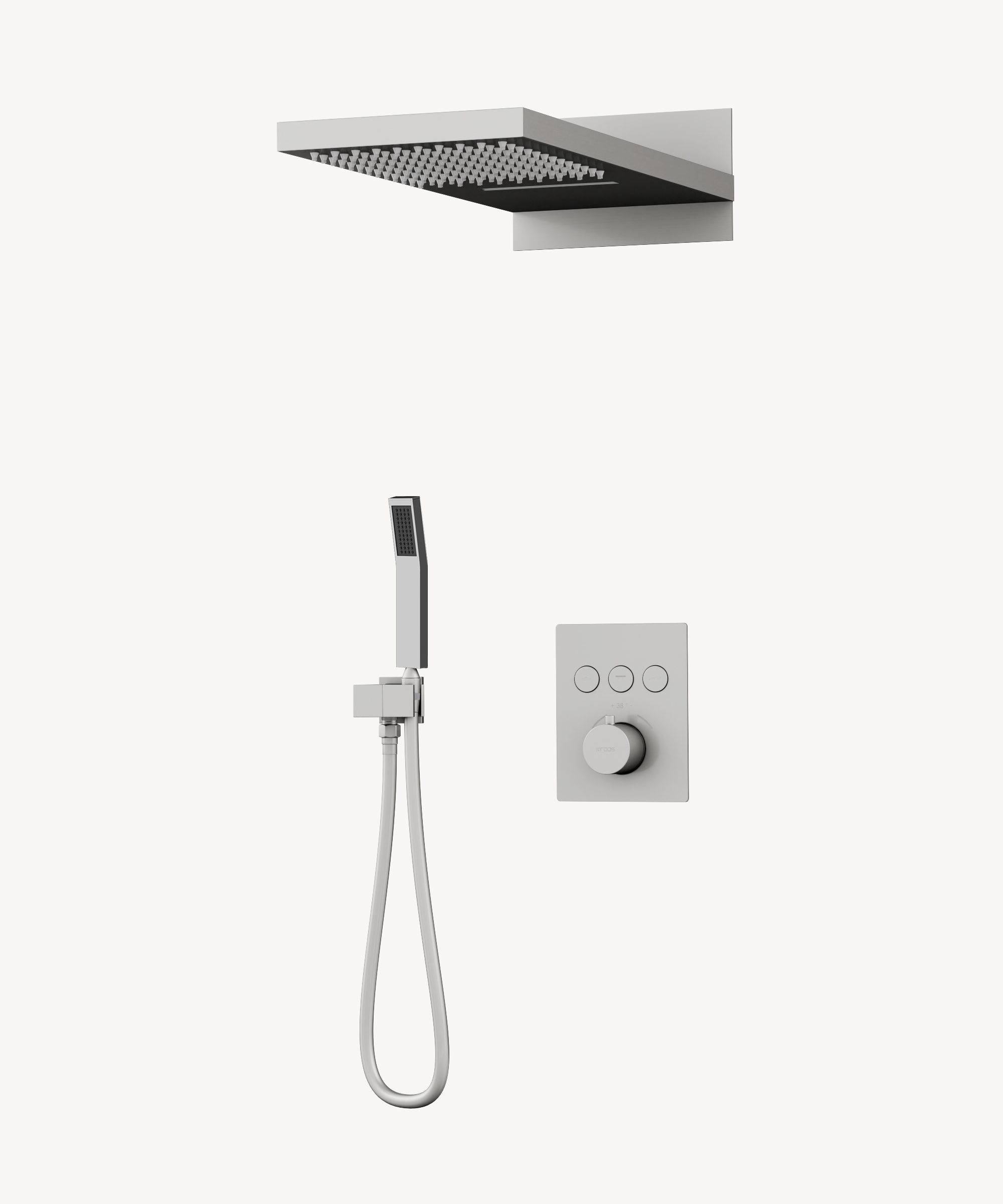 La colonna doccia incasso si fa notare per il miscelatore termostatico, elemento che assicura un controllo puntuale della temperatura, qualità particolarmente apprezzabile in spazi familiari dove la sicurezza assume una centralità indiscussa. Il corpo principale e la doccetta, sapientemente realizzati in ottone, conferiscono una solidità percepibile al tatto, mentre il soffione, prodotto in acciaio inox, riflette la ricerca di longevità e affidabilità. Le linee, ridotte all’essenziale, trovano un’armonia naturale nella finitura nickel spazzolato, definendo così una presenza discreta e sofisticata, perfettamente integrabile in sale da bagno d’ispirazione moderna o senza tempo. L’ergonomia è affidata ai 3 pulsanti intuitivi, che consentono una transizione fluida tra doccetta, getto a pioggia ed effetto cascata, garantendo ogni volta una fruizione su misura.