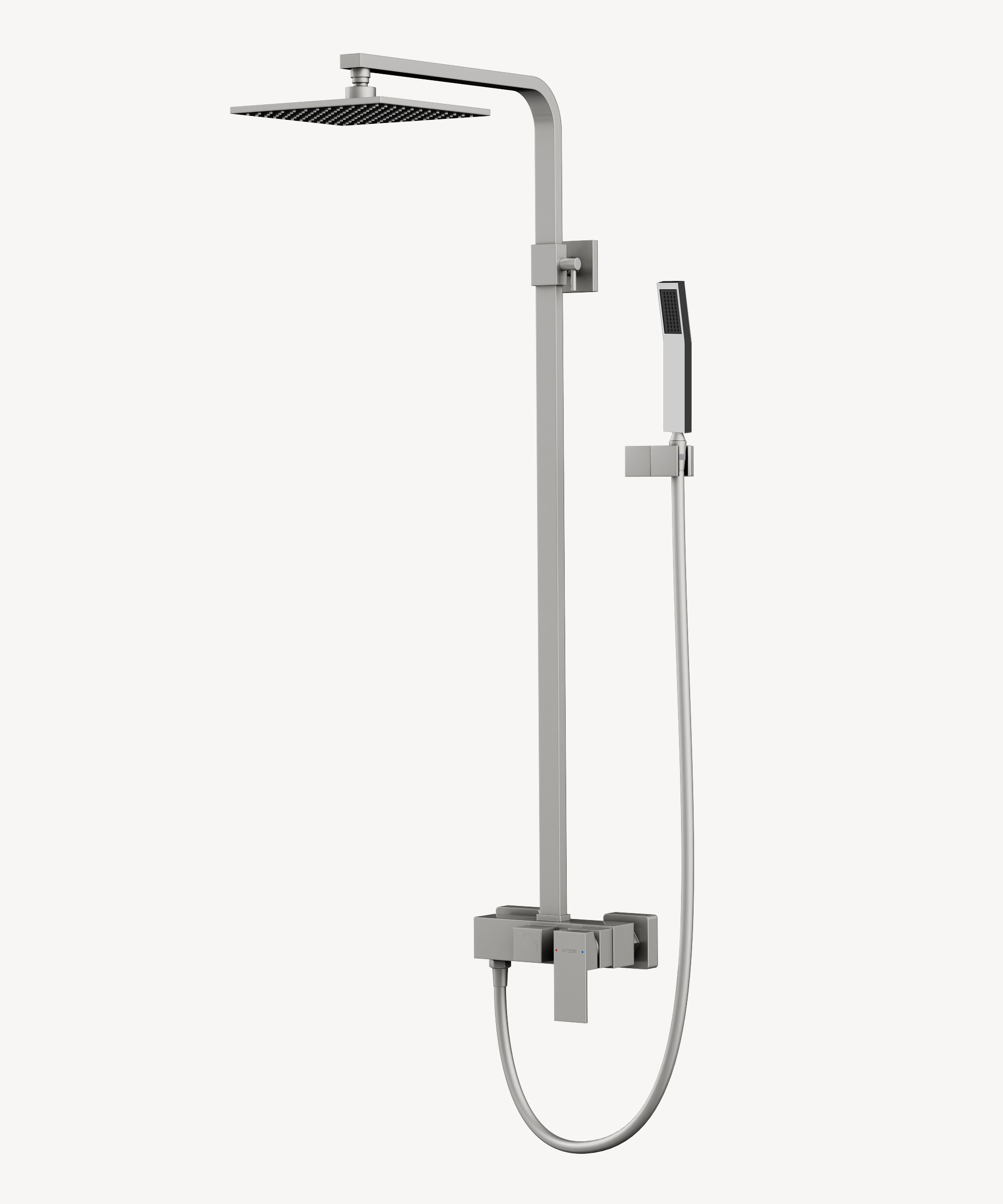 Raffinata da linee squadrate e da una presenza visiva decisa, la colonna doccia Sirius si distingue per la sua estetica dichiaratamente moderna. Disponibile in diverse finiture, il nichel spazzolato si impone come scelta d’eccezione: questa tonalità sofisticata attenua la precisione geometrica delle forme, valorizza la luce naturale e dialoga con armonia con i materiali circostanti dell’ambiente bagno. Una soluzione cromatica ideale sia per spazi minimalisti che per interni dagli accenti più ricercati.