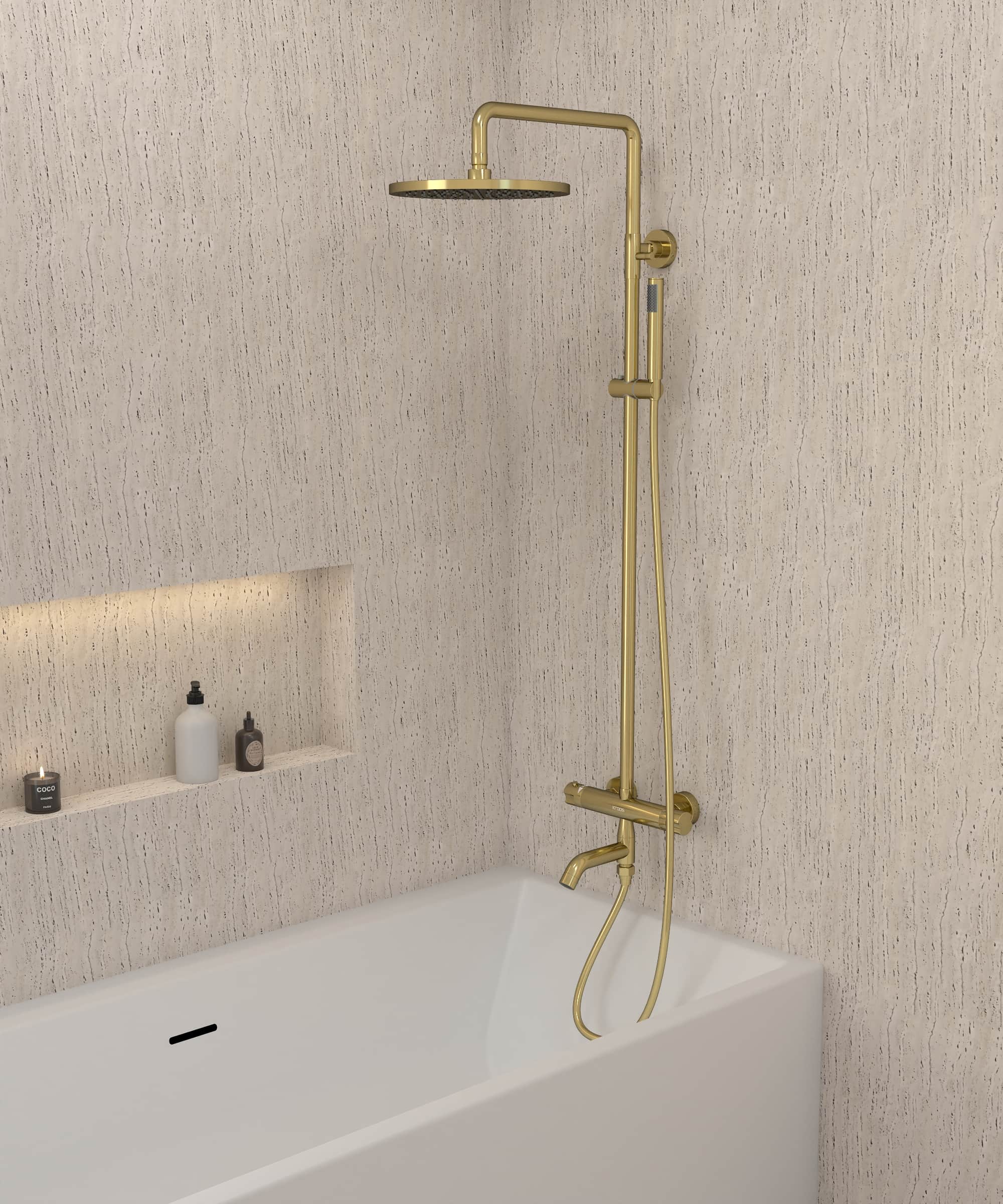 Colonna bagno-doccia termostatica Corbeau dorata: eleganza, benessere e sicurezza nella quotidianità