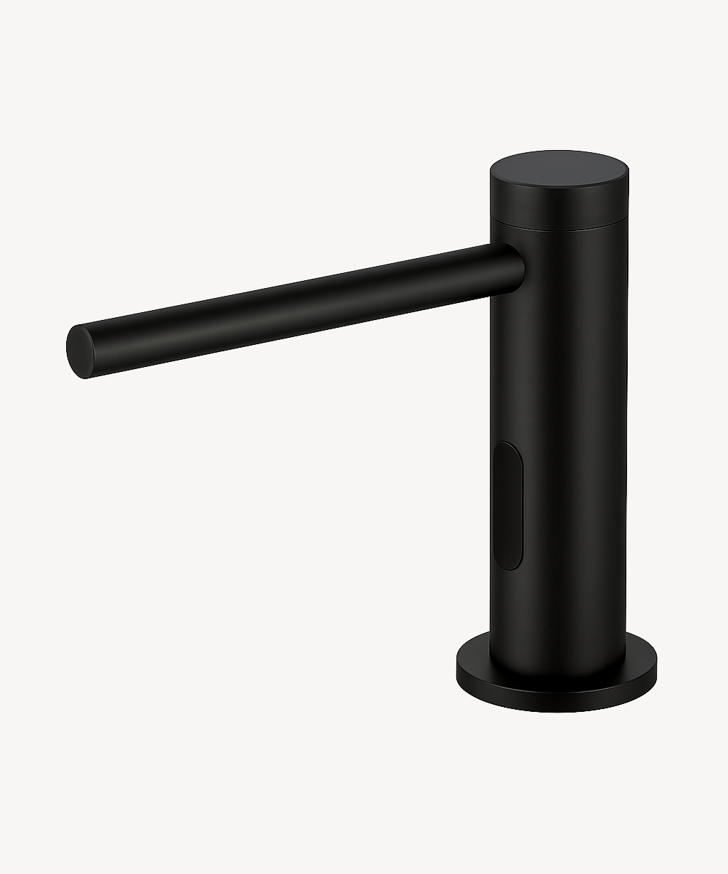 Ispirata alla purezza delle linee architettoniche, la forma richiama quella di un miscelatore, consentendo una facile installazione monotrou direttamente sul piano lavabo. La finitura Noir conferisce un’allure senza tempo, capace di impreziosire sia un ambiente bagno monocromatico che una scenografia caratterizzata da contrasti decisi. Tutti gli elementi necessari per l’installazione (viti, dado, ecc.) sono inclusi, per un montaggio immediato e privo di complicazioni.