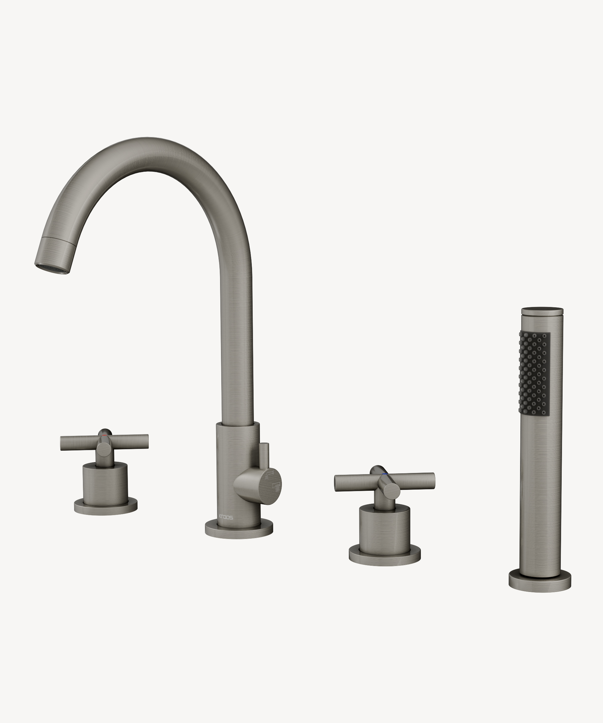 Simbiosi perfetta tra funzionalità e raffinatezza estetica, questo miscelatore vasca-doccia a 4 fori si distingue come elemento iconico all’interno di bagni di alta gamma. Progettato per essere installato direttamente sul bordo vasca, si inserisce con naturalezza e autorevolezza nell’architettura degli spazi dedicati al benessere.