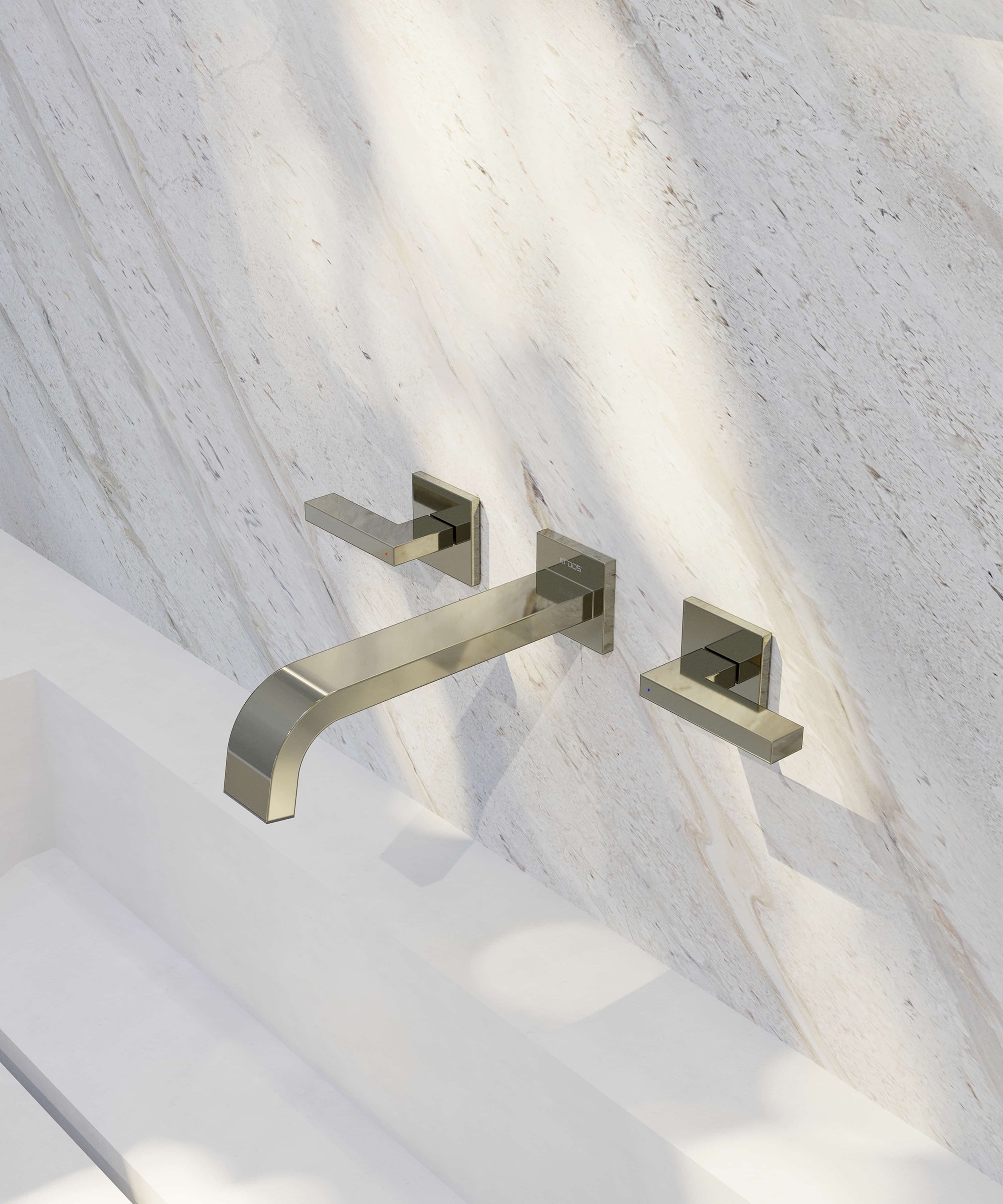 Il miscelatore lavabo a parete Fiumina, realizzato in ottone, garantisce una durata eccezionale mantenendo una finitura impeccabile nel tempo. Fornito con corpo incasso, assicura un’installazione a parete pulita e totalmente integrata.