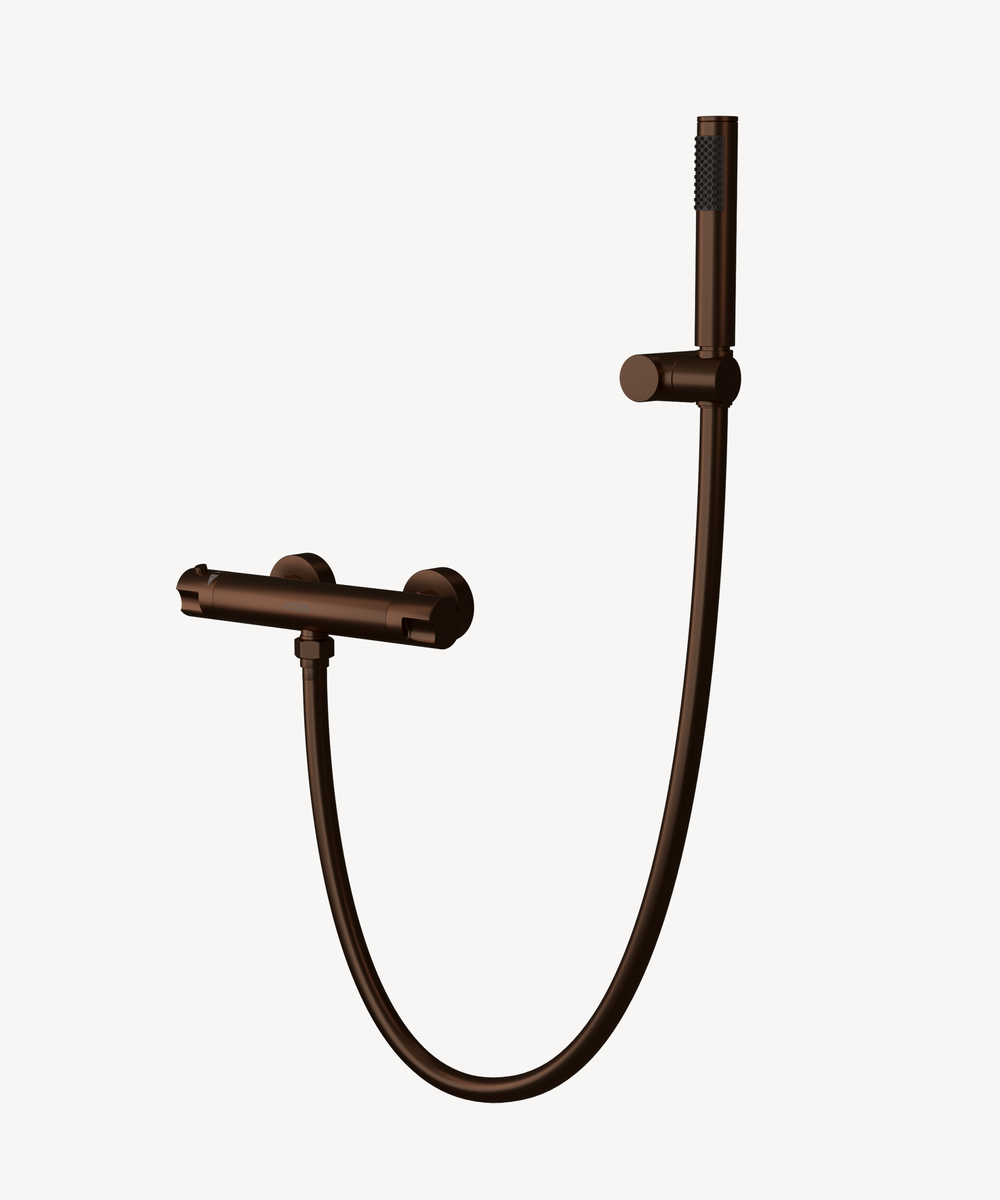 Una staffa murale progettata in modo robusto valorizza la stabilità della doccia a mano, la cui forma arrotondata ed ergonomica favorisce una presa estremamente agevole. La struttura in ottone di alta qualità garantisce una notevole resistenza all’usura e alla corrosione, qualità ulteriormente amplificate dalla cura della finitura, concepita per durare nel tempo.