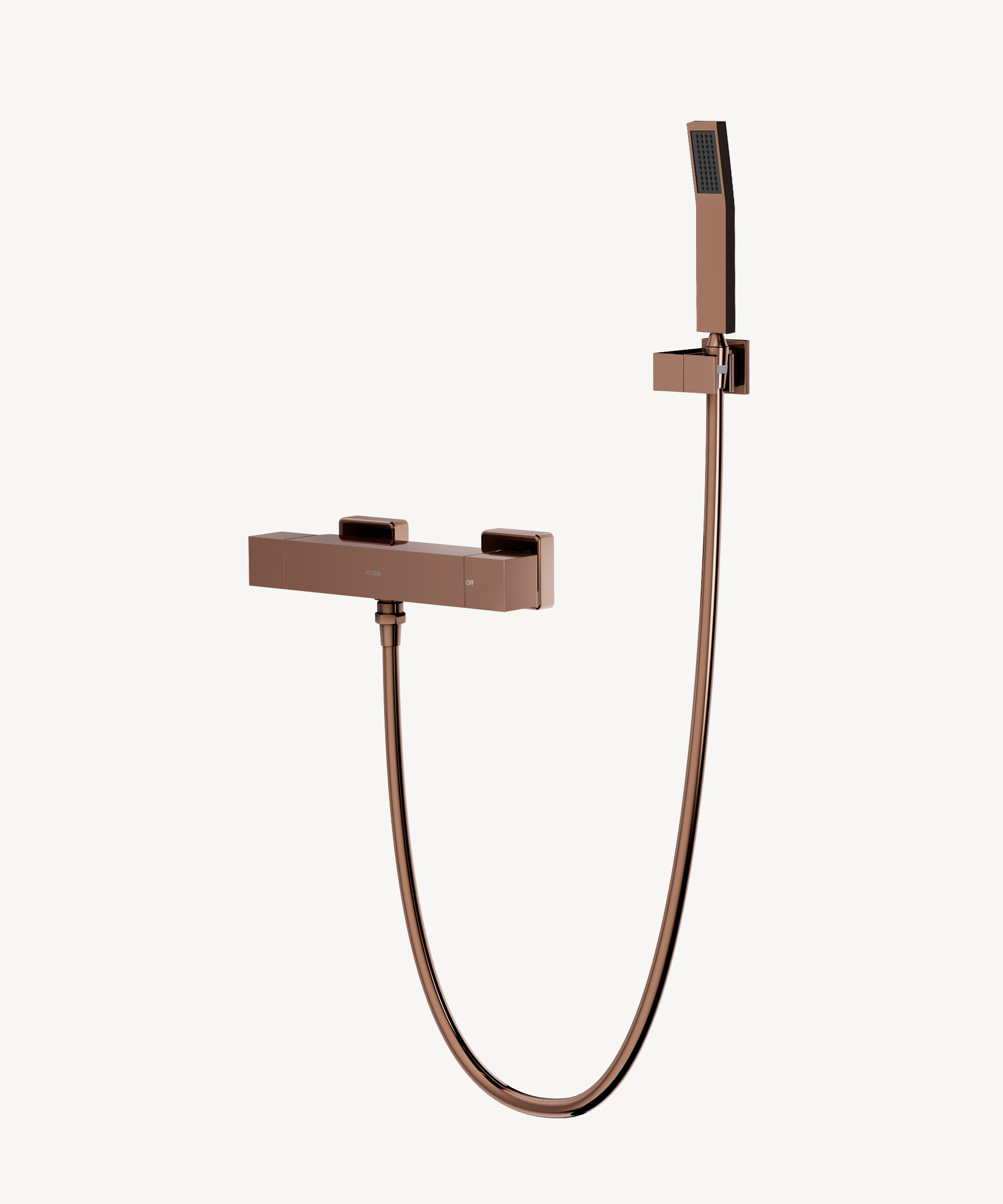 L’equilibrio tra estetica raffinata e funzionalità intelligente si manifesta in questo miscelatore termostatico doccia da parete della collezione Sirius, caratterizzato da un’architettura squadrata e da dettagli finemente lavorati, che donano all’ambiente bagno una presenza dal carattere decisamente contemporaneo. L’esclusiva variante in or rose, luminosa e sofisticata, introduce un accento prezioso e delicato, capace di arricchire con discrezione anche le sale da bagno dall’eleganza più studiata.