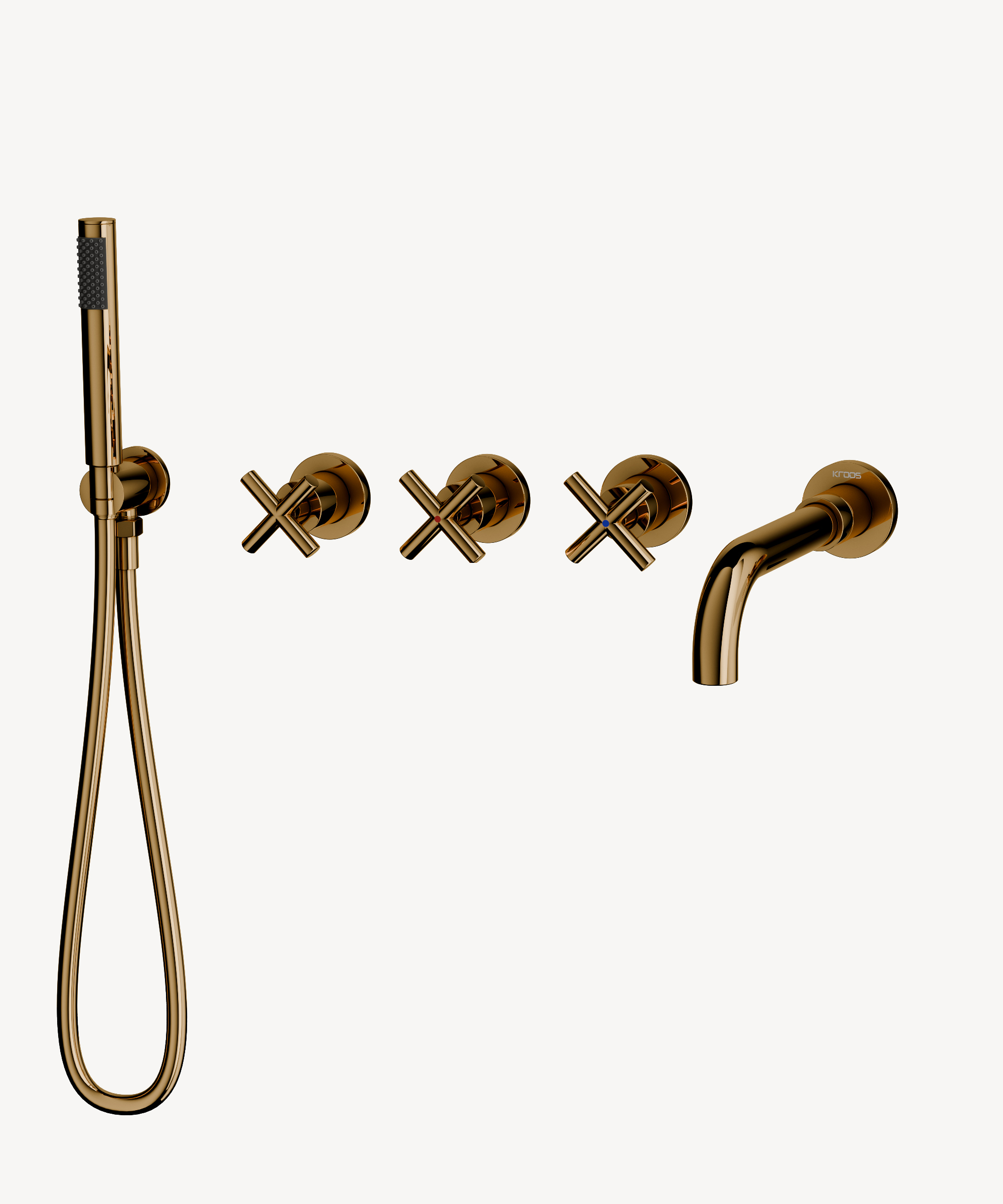 La collezione Corbeau affascina per la forte personalità del progetto: un linguaggio architettonico definito e un senso di intemporalità che supera le mode passeggere. Questo miscelatore da bagno incasso 5 fori si rivolge a chi ricerca uno spazio dalla personalità marcata, in cui ogni elemento è pensato per valorizzare e definire l’insieme. La finitura dorata, perfettamente integrata nei contesti più eleganti, riflette la luce e nobilita i materiali circostanti, offrendo un accento prezioso nei progetti di interior design più esigenti.