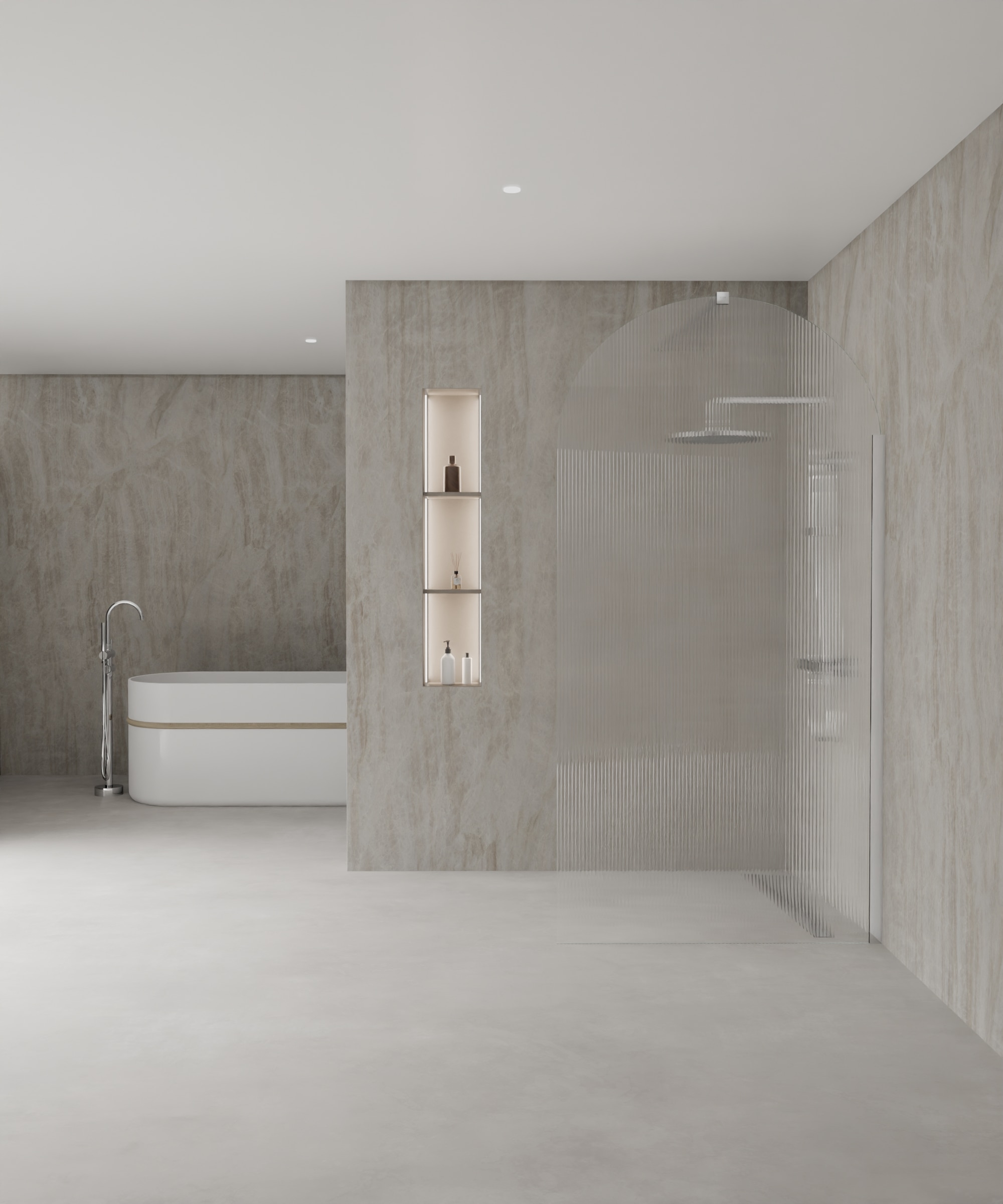 Nisa - Parete doccia fissa in vetro curvo scanalato cromato
