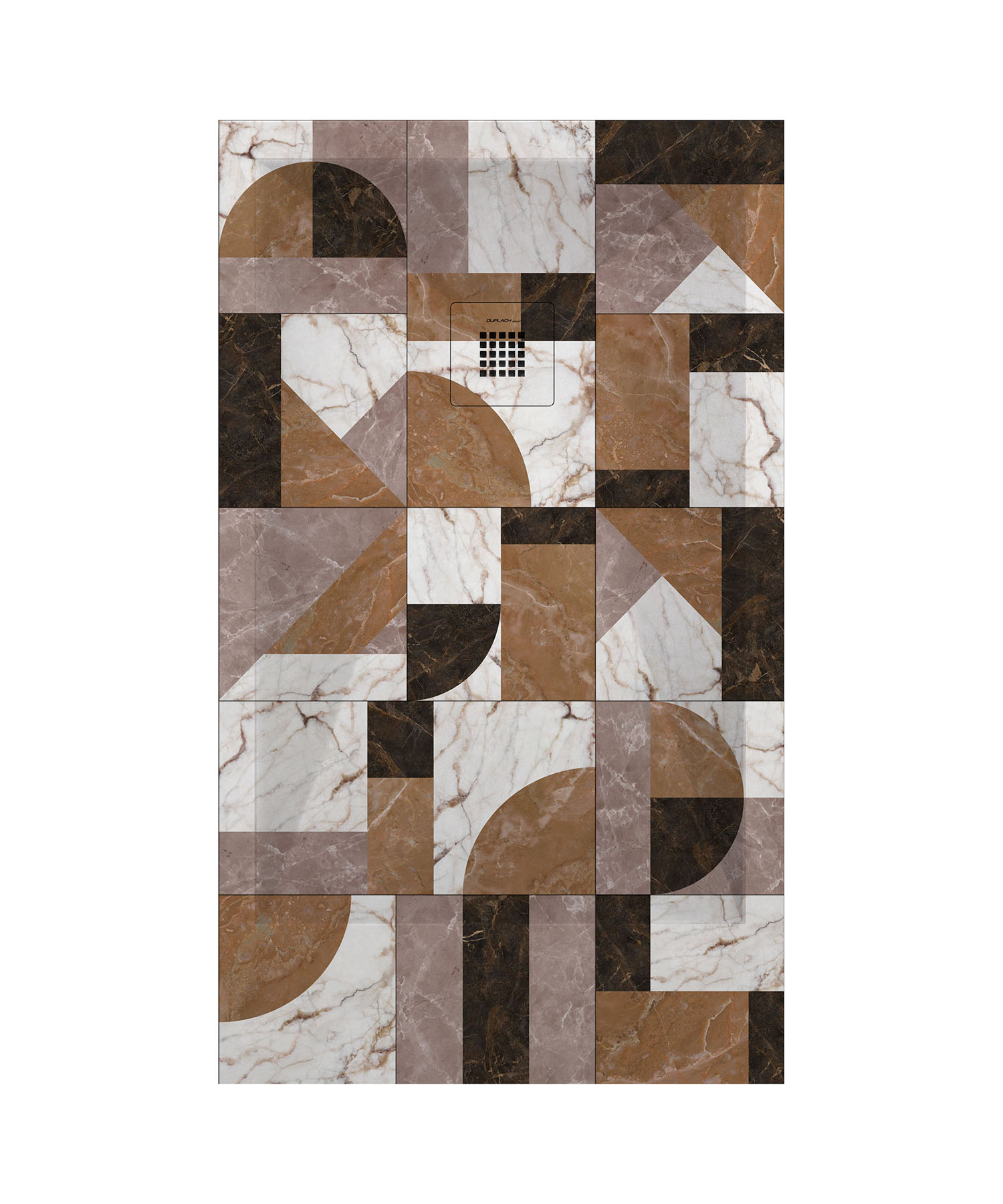 Piatto doccia Ebano, finitura Liscia Stone 3D, griglia colorata