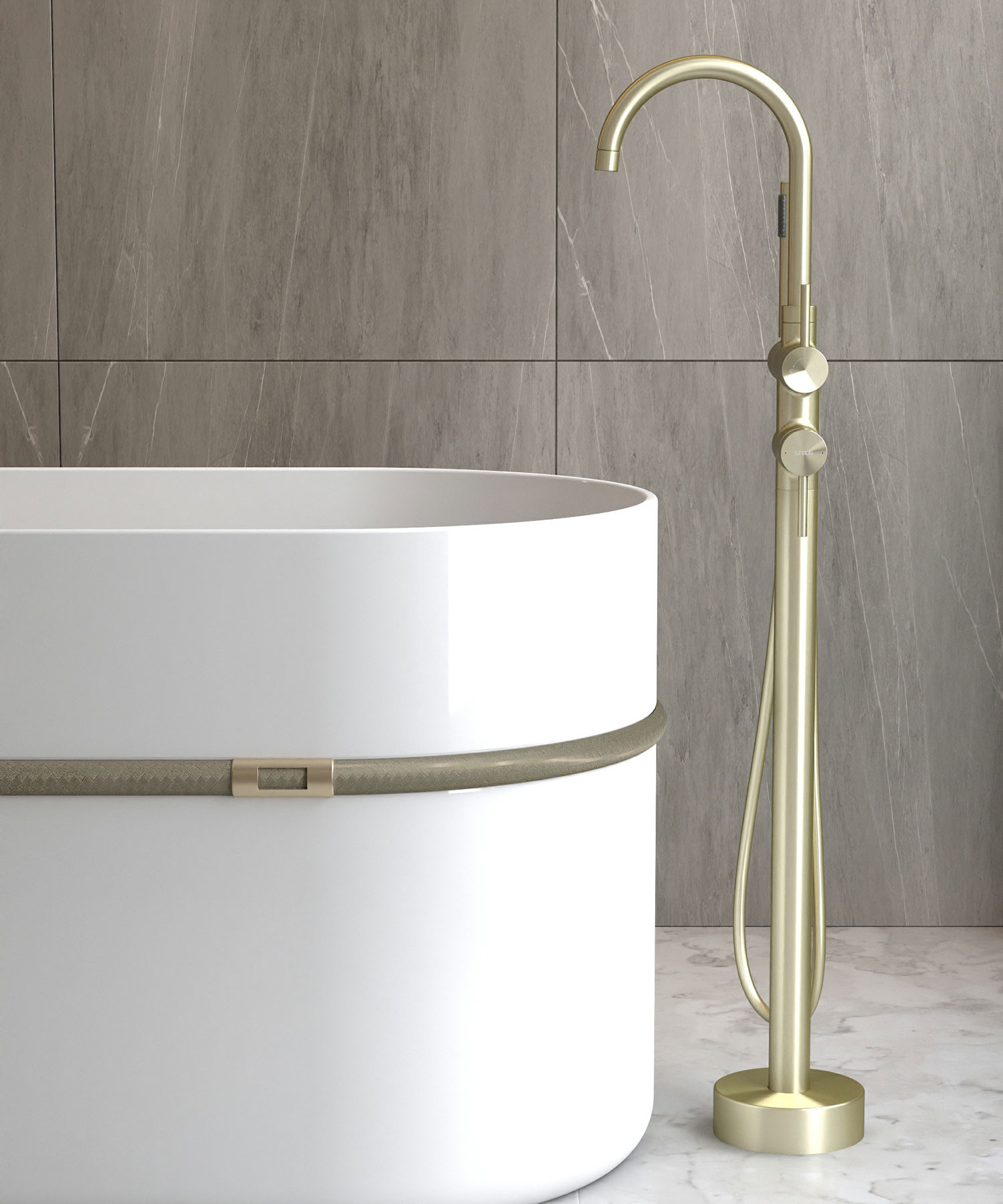 Rubinetto miscelatore per vasca-doccia a pavimento Dorato spazzolato - Corbeau