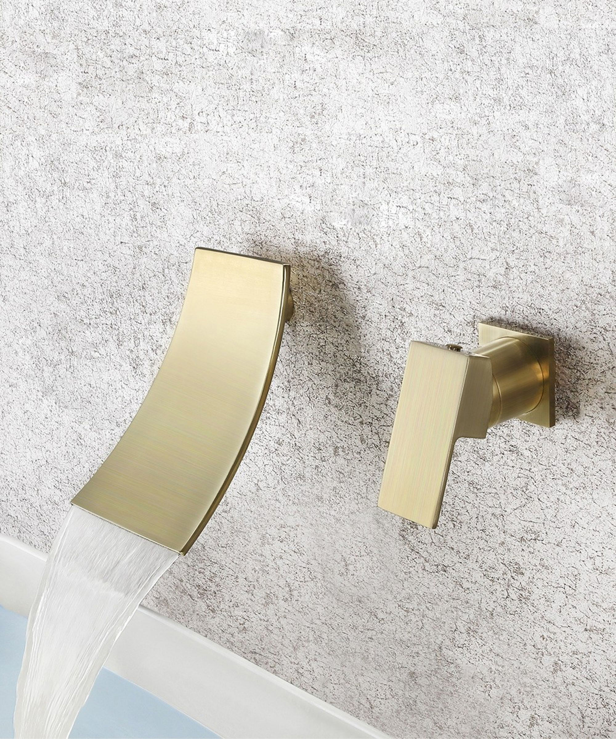 Miscelatore lavabo a parete a cascata oro spazzolato