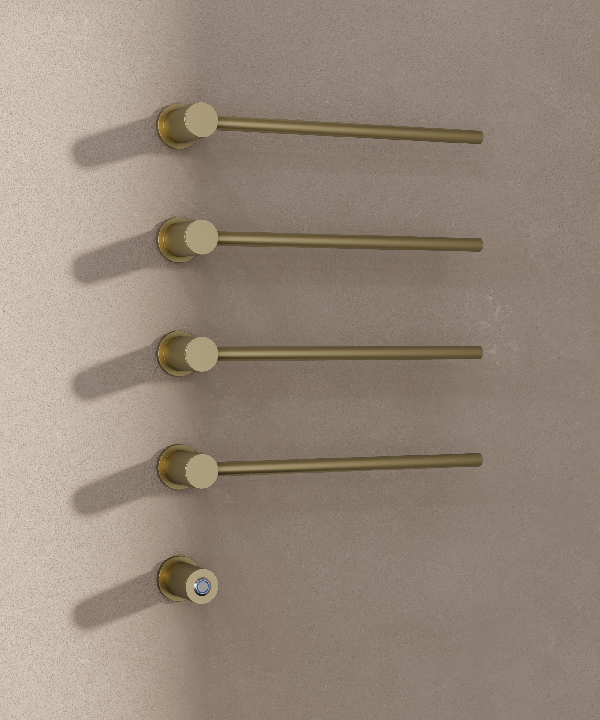 Questo scaldasalviette elettrico a parete color oro spazzolato non è solo pratico: trasforma il Bagno in un luogo chic e accogliente, unendo l'estetica al comfort quotidiano.