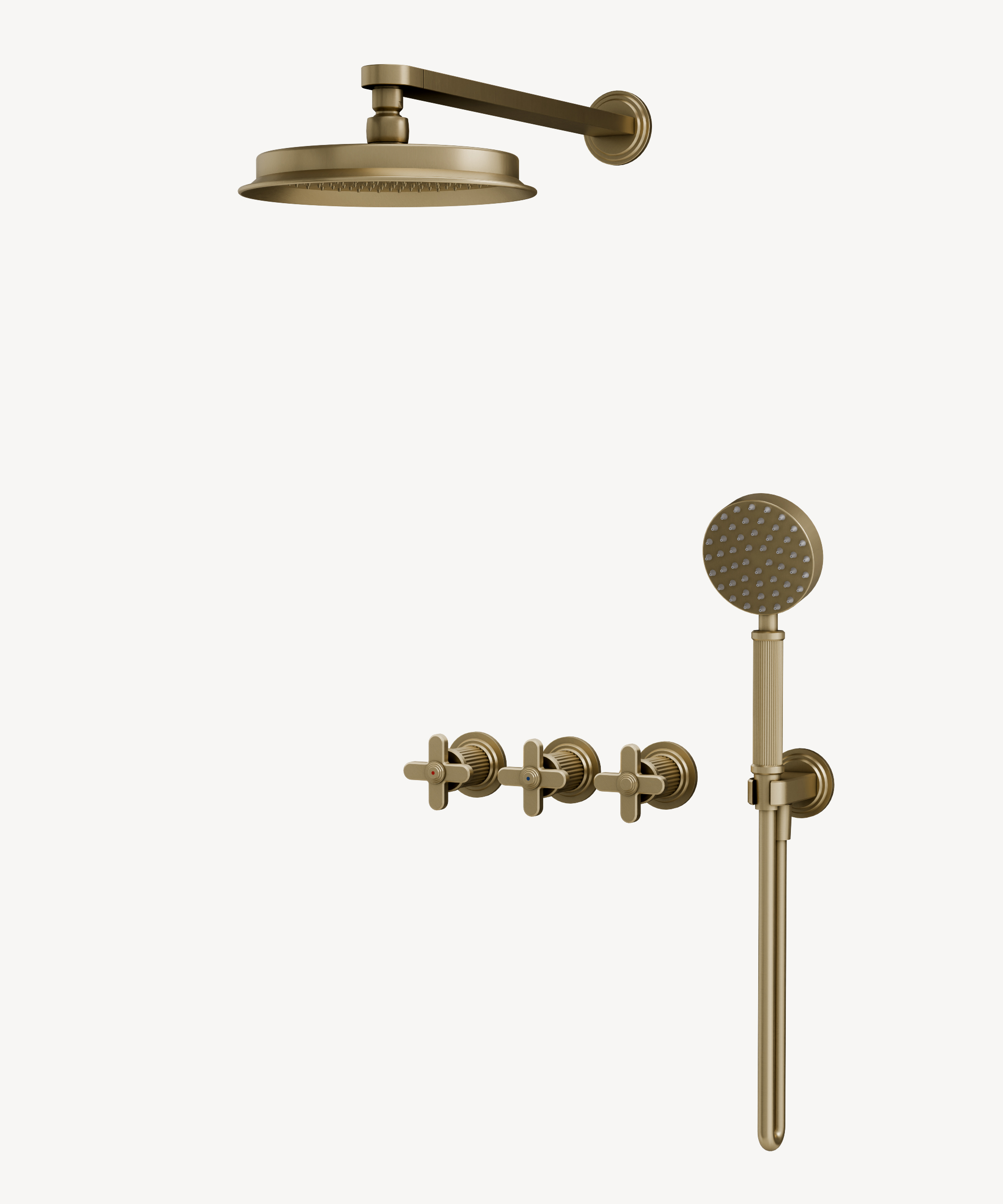 Con le sue linee eleganti e la finitura dorata spazzolata, la collezione Hera offre la libertà di creare una sala da bagno unica e ricca di personalità!