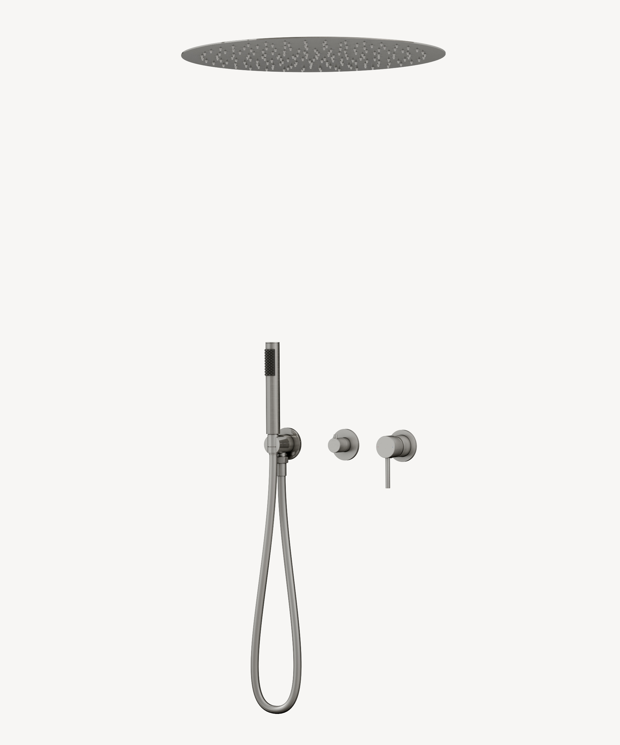 L’esperienza rituale della doccia assume una nuova dimensione sensoriale grazie al pack miscelatore doccia a 3 fori ad incasso Corbeau. L’ampio soffione rotondo da 400 mm, perfettamente integrato nel soffitto, delinea uno spettacolo visivo in cui la percezione spaziale si amplia, esaltando l’estetica minimalista di una sala da bagno contemporanea. Questa configurazione, caratterizzata da un’eleganza riservata, si distingue per l’integrazione discreta e priva di ingombri visivi, introducendo un senso di raffinatezza sottile in ogni ambiente, sia esso improntato a linee moderne, classiche oppure industriali.