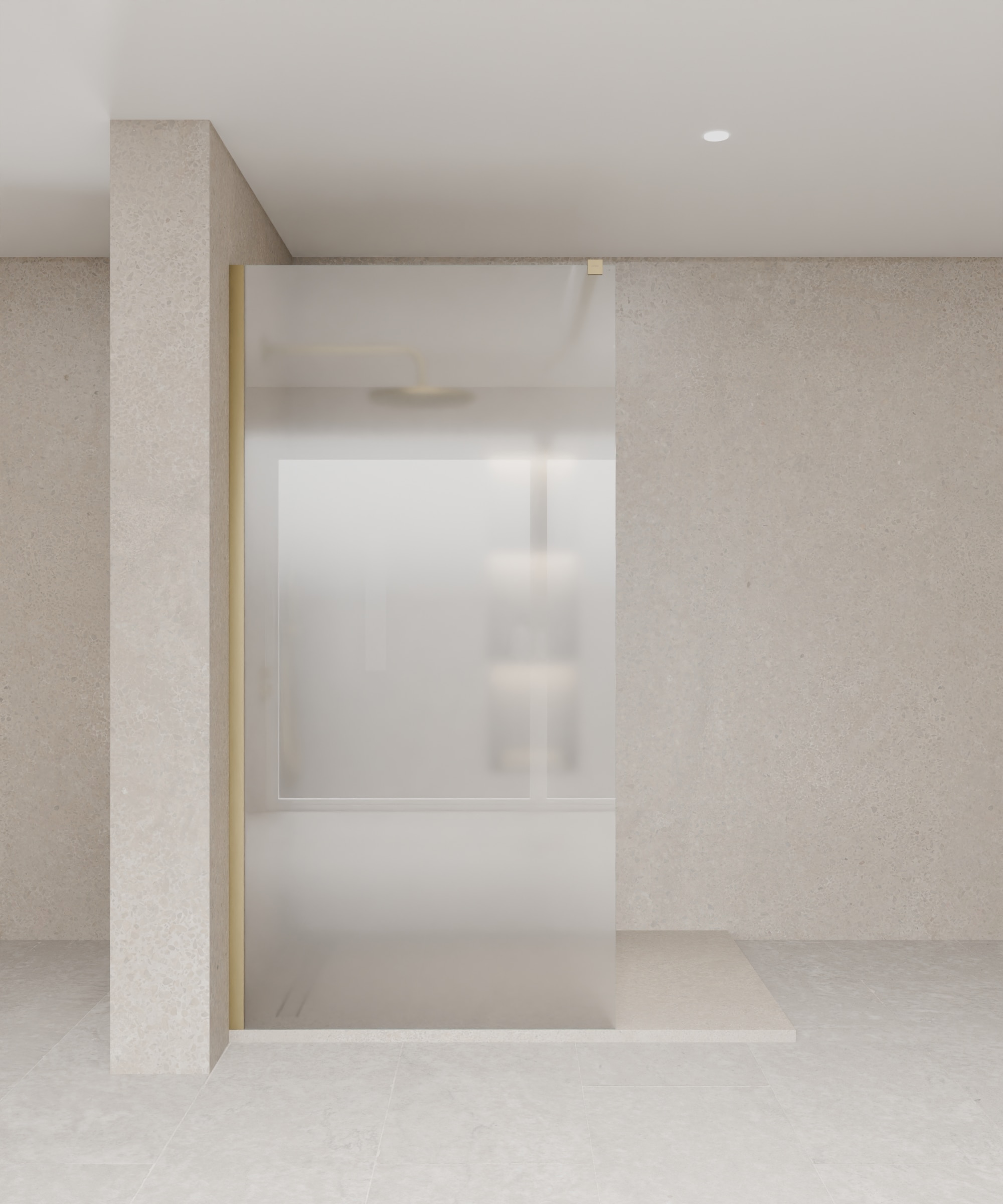 Tavira - Parete doccia oro spazzolato fissa in vetro temperato Ice